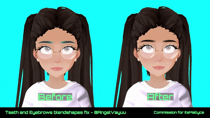 | CONVERSION D'AVATAR EN VRM Contient : - Springbones des cheveux (physique pour VRM) & colliders - Lier les blendshapes VRM basiques existantes - Lier les textures existantes Extra : - Ajout de la physique de la langue - Ajout de toggles supplémentaires - Setup de material blendshapes specifiques pour les personnages lowpoly | Voir plus |